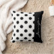 A chic design that's always in style, this design features black polka dots over a white background. A wide band of black runs vertically along one end of the design with a text template for personalising with your name, monogram or other desired text. This pillow is a great choice for a bedroom, dorm, or other space that you want to personalise with your unique style. Available in 2 sizes; 16 inch and 20 inch square as well as 2 different fabric types; polyester or cotton.