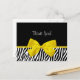 Say thank you with this trendy black and white thank you postcard with a zebra print pattern and a cute yellow ribbon tied in a bow. Blank on back. Flat printed image, not actual ribbon.