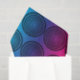 Graphical pattern with concentric mosaic circles on a gradient rainbow background.