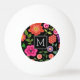 Trendy Black Floral Pattern with Custom Monogram Ping Pong Ball