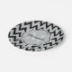 Trendy Black Grey Chevron Zigzag Name and Monogram Paper Plate