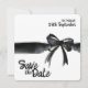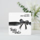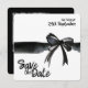 Tying the Knot Save The Date Bow Card is a modern simple yet trendy black and white minimalist design, This wedding save-the-date card is the elegant choice for a cool wedding and features a hand-painted black ribbon bow on a white background.. This wedding template features bold and modern script and clean typography for all of your personal wedding information. The colour on the back is black for contrast with a section for a custom photo or the bride and groom. This matches our watercolor bow wedding collection, and this stationary is an easy DIY to edit at home.