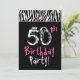 Trendy Black White Pink Zebra 50th Birthday Invitation