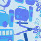 Trendy Blue Back to School Pattern Peel and Stick Wallpaper