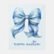Wrap your little one in comfort and style with our Trendy Blue Bow Personalised With Name Monogram Fleece Blanket. This chic, preppy blanket features a charming coquette bow design that adds a touch of elegance to any nursery or bedroom. Perfect for a newborn baby gift or a special baby name reveal, this blanket makes a thoughtful and memorable present. The soft fleece fabric ensures warmth and cosiness, making it a favourite for cuddles and naps.
