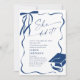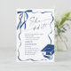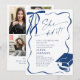 Trendy Blue Bow Ribbon 4 PHOTO Graduation Party Invitation