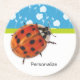 Personalise by adding your name to this trendy blue and white floral pattern with a green stripe and a cute red spotted ladybug.