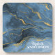 A pretty square navy blue blue and gold marble coaster personalized with your name in a script font for the first name and a sans serif font for the last name. Has an elegant and chic style teal blue and gold background. Makes an elegant and stylish addition to your office. Designed for you by Blackberry Boulevard.