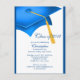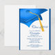 Trendy Blue Grad Cap Graduation Party Invitation Postcard