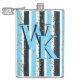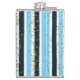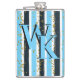 Trendy Blue Stripe Gold Glitter Monogram Glam Hip Flask