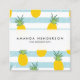Trendy Blue White Stripes Pineapple Pattern Square Business Card