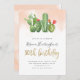 Trendy Blush Watercolor & Cactus 30th Birthday Invitation