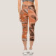 Trendy boho brown orange Abstract wavy Capri Leggings