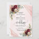 Trendy Boho Dark Red Gold Blush Flowers Wedding Invitation