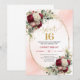 Trendy Boho Deep Red Gold Floral 16th Birthday Invitation