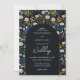 Trendy Boho white daisies wild flowers navy arch Invitation