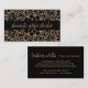 Trendy Bronze Mandala Professional Business Card - A stylish business card featuring a bronze mandala on a black background. Personalise the front and back with your information. A beautiful, versatile design that is perfect for professional businesses like interior design, yoga instructor, hair stylist, makeup artist, event planner and more. Design by The Spotted Olive™. Please note this design features artwork that includes a digital glitter effect. There is not glitter, foil or metallic inks used. It is a flat design with no embellishments.