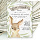 Bunny Rabbits are one of the most popular baby shower themes due to the popularity of children's books featuring rabbits. This cute watercolor design has a brown bunny with an adorable face and is framed in a wispy green leafy pattern. The colour scheme works beautifully for both baby boys and baby girls. Personalise the sample text with your specifics.