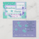 This whimsical business card is done in a patchwork of designs, with flowers, polka dots, and stripes would be great for a day spa, florist, bakery, gift shops, childrens store, and more. Trendy colours of teal and lavender together gives it a fun noticeable quality that customers won't forget. Customise with your information to personalise for yourself or your store.