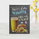 A modern Chalkboard Effect Birthday Greeting Card With Beer Burger And Fries