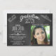 Chalkboard typography invitations are so hot this season, so it's only natural to celebrate your 2013 graduate with this modern, trendy chalkboard typography 2013 graduation photo invitation. Done in traditional chalkboard black and white, this is a fun invitation perfect for the middle school, high school or college graduation. Easily add you own photo and personalise with your information by using the given template.