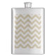 Hip and modern Trendy Chevron Classic Flask. This cool flask features a chevron zig zag pattern in beige and white. Add text to this design to give it a personal touch.