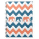 Trendy Chevron Elephants Coral Blue Stripe Pattern Notebook