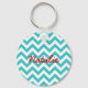 Hip and modern Trendy Chevron Keychain. This cool keychain features a chevron zig zag pattern in turquoise and white. Add text to this design to give it a personal touch.