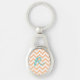 Hip and modern Trendy Chevron Metal Keychain. This cool keychain features a chevron zig zag pattern in coral and white. Add text to this design to give it a personal touch.