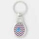 Hip and modern Trendy Chevron Metal Keychain. This cool keychain features a chevron zig zag pattern in purple and white. Add text to this design to give it a personal touch.
