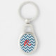 Hip and modern Trendy Chevron Metal Keychain. This cool keychain features a chevron zig zag pattern in blue and white. Add text to this design to give it a personal touch.