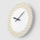 Hip and modern Trendy Chevron Wall Clock. This cool clock features a chevron zig zag pattern in beige and white. Add text to this design to give it a personal touch.