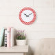 Hip and modern Trendy Chevron Wall Clock. This cool clock features a chevron zig zag pattern in red and white. Add text to this design to give it a personal touch.