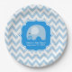 Trendy Chic Blue Elephant Baby Boy Shower Chevron Paper Plate