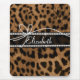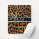 Trendy chic girly faux brown black leopard animal fur print, white shining pearls bow and ribbon. Personalise your name or favourite words, or delete the name for image only, image print.
