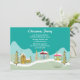 This 5x7 Christmas party invite has green trendy Christmas trees and some neighbourhood houses covered in snow at the bottom with your customisable party information at the top. Design by Riefka Design