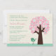 This 5x7 baby shower invite has a cute trendy aqua and pink circles tree with a teal green bird sitting underneath. You can easily customise your party information on the left. BabyStar Design.