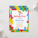 Trendy Colourful Building Blocks 7th Birthday Part Invitation