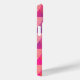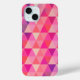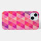 Trendy geometric pattern on phone case. In this design you can see colours like pink, coral, magenta and purple.