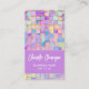 Trendy Colourful Modern Watercolor Tiles QR Code Abstract Personalised Name Corporate Business Cards features colourful watercolor tiles in purple, blue, green, yellow, pink, orange and gold with an overlay of your name and company or designation on the front. On the reverse is your, tagline or additional text, personalised contact details and your custom QR code. Perfect to promote your small business. Designed by © Evco Studio www.zazzle.com/store/evcostudio