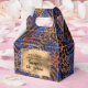 Zebra stripes and leopard spots on blue, brown and gold print pattern gable style favour boxes feature your thank you message on gold faux foil on the front in chic lettering. Beautiful for birthday party favour boxes and more. MATCHING items in our store.