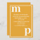 Simple minimalist typography design in a trendy cute text pairing of fonts in bold lower case for the monogram letter text templates and upper case font templates for the details that are easy for you to personalise in the popular wedding colour of marigold yellow and white. Just change the letters and details to your own right on the product page. All elements are fully customisable.