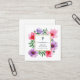 Trendy Cute Watercolor Pink Flowers Monogram Square Business Card