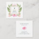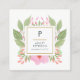 Trendy Cute Watercolor Pink Flowers Monogram Square Business Card