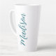 A trendy personalised turquoise monogram latte mug for a girl who loves simple, handwritten gifts. Beautiful cursive script down the side of your bottle spelling out your name in elegant typography.