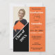 On the left, there is a photo of the graduate and a large diagonal stripe cuts across a solid orange background, housing the customisable text “Class of 20XX”. This allows you to personalise the invitation with the specific graduation year, making it a perfect keepsake for the graduate.