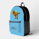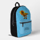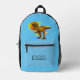 On this delightful back pack is an open mouthed dinosaur with sharp razor teeth waiting for battle with a sword in his little hands. Perfect for any kid who loves the dinosaur spirit. Can be personalised on the front pocket with a name to make it uniquely your own.