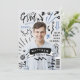 Standout and announce your grad's celebration party with this unique graduation invitation design. The grad invitation is styled to look like a fun and hip magazine photo cover. The design incorporates a large magazine feature image placeholder for your own grad's photo. The masthead of the magazine "The Grad" creates the magazine name. The masthead can be changed to any colour so that you can choose a colour that will work for your photo. (simply click customise further to access the layers) Fun stylish doodle icons are added around the grad photo, creating a fun and unique look. Please note that the doodle icons can be changed to any colour you like and can be moved around to suit your photo. The reverse side of this magazine inspired invitation design is designed to look like a page from a magazine, with the grad party invitation details designed in magazine style with pull quotes and other elements, as well as a second placeholder image for your additional photo. You can customise the text size, text colour, font, and layout for your own personal design preference. Artwork designed by Moodthology.