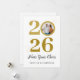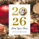 Trendy Elegant Script Happy New Year One Photo Holiday Card