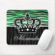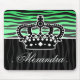 A girly zebra striped pattern in emerald green and black with a crown. Shown on a mousepad